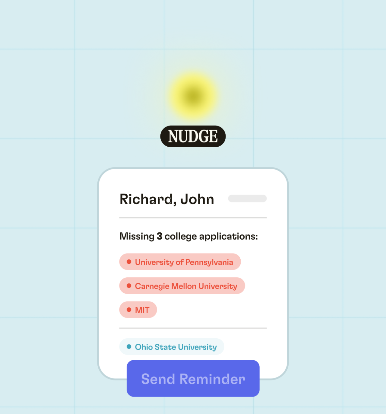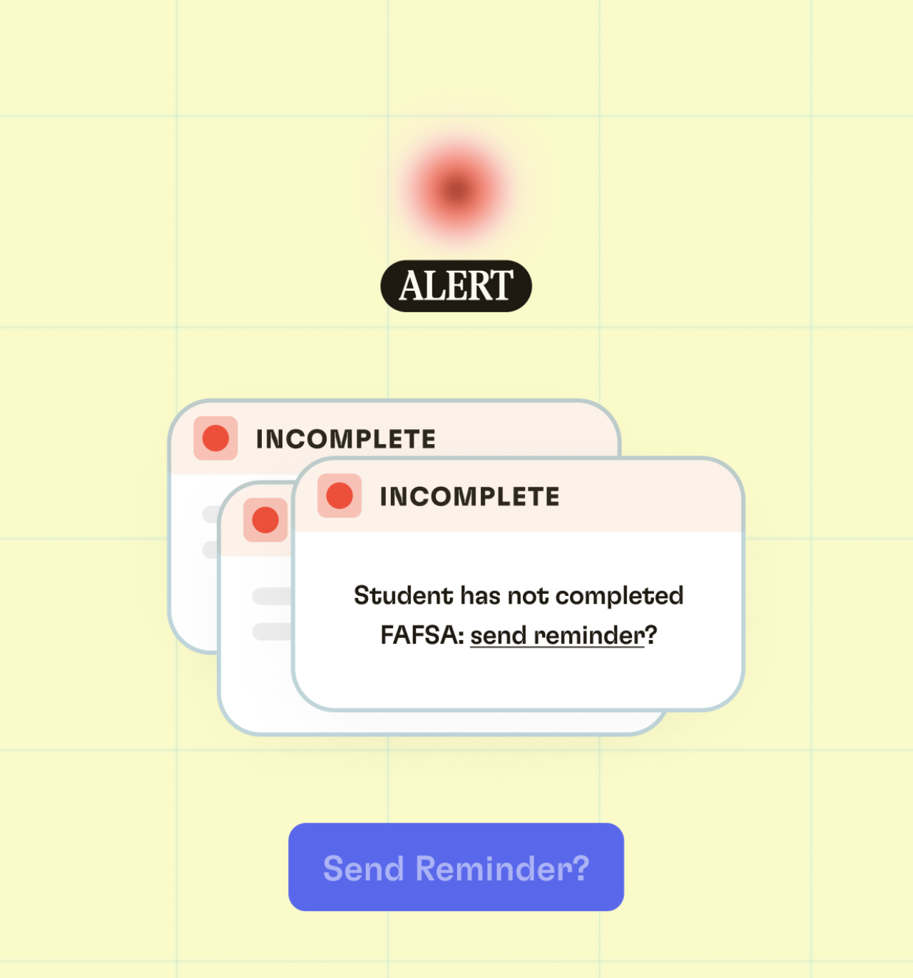 Predictive nudges recommend practical next steps (follow up, schedule, remind, or guide) based on real student activity—so staff can take action faster, with less guesswork.