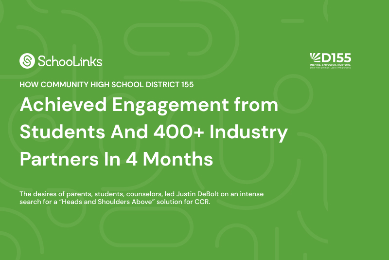 As articulated in their mission statement, District 155 strives for all students to, “Enter with promise, leave with purpose.” SchooLinks is a pivotal resource to help students truly realize this goal. With tools to encourage exploration and goal-setting, resources to connect students with industry partners for real-world learning opportunities, and a platform to help students structure a productive path towards these postsecondary aspirations, SchooLinks is quickly becoming a vital component of this work to transform students’ potential into future success.